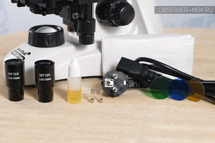 Микроскоп Левенгук МЕД 10 поставляется со следующими необходимыми для работы аксессуарами: