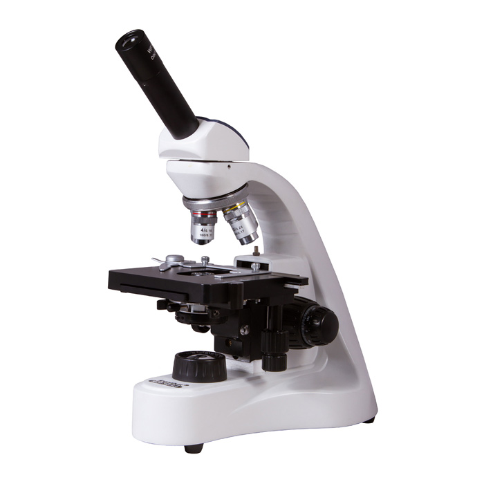 - Монокулярный микроскоп Levenhuk MED 10M – это самый простой вариант для наблюдения одним глазом. Эта модель