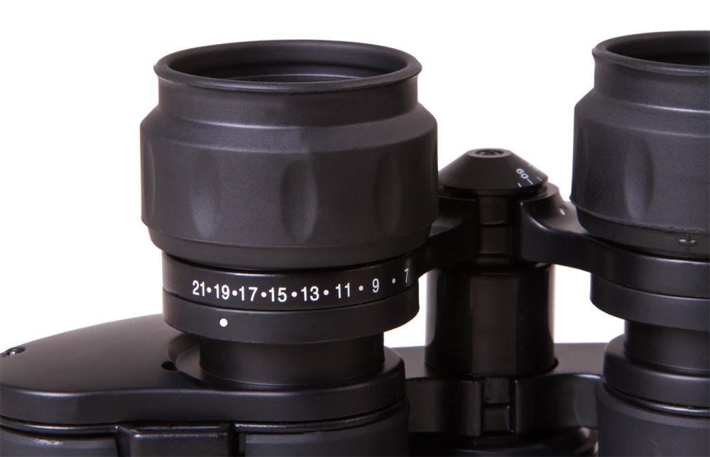 Оптика. В приборе использованы призмы Porro. Все составляющие оптики произведены из отличного боросиликатного стекла BK-7, на поверхность которого нанесено просветление, позволяющее сократить к минимальному значению потери света, при этом контрастность и яркость отображаемой картинки сохраняется. Регулируемое увеличение модели в пределах от 7 до 21 крат позволяет вести наблюдения на значительном удалении от объектов.