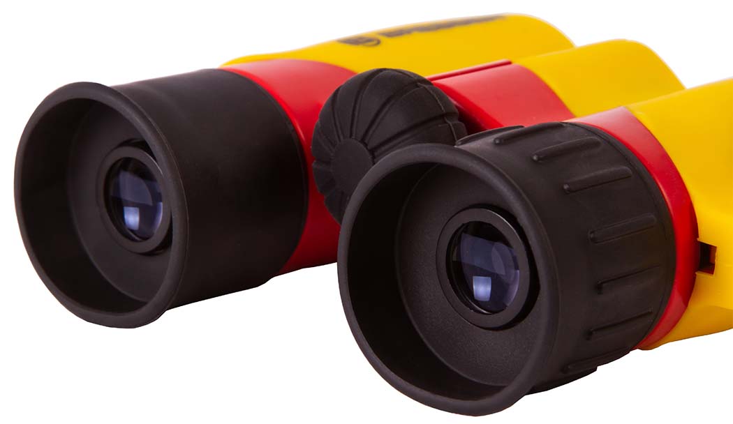 Корпус. Бинокль имеет прорезиненную поверхность корпуса, который, в свою очередь, выполнен из пластика. Красивая желто-красная расцветка будет не только привлекать внимание, но и поможет отыскать бинокль при случайной потере.