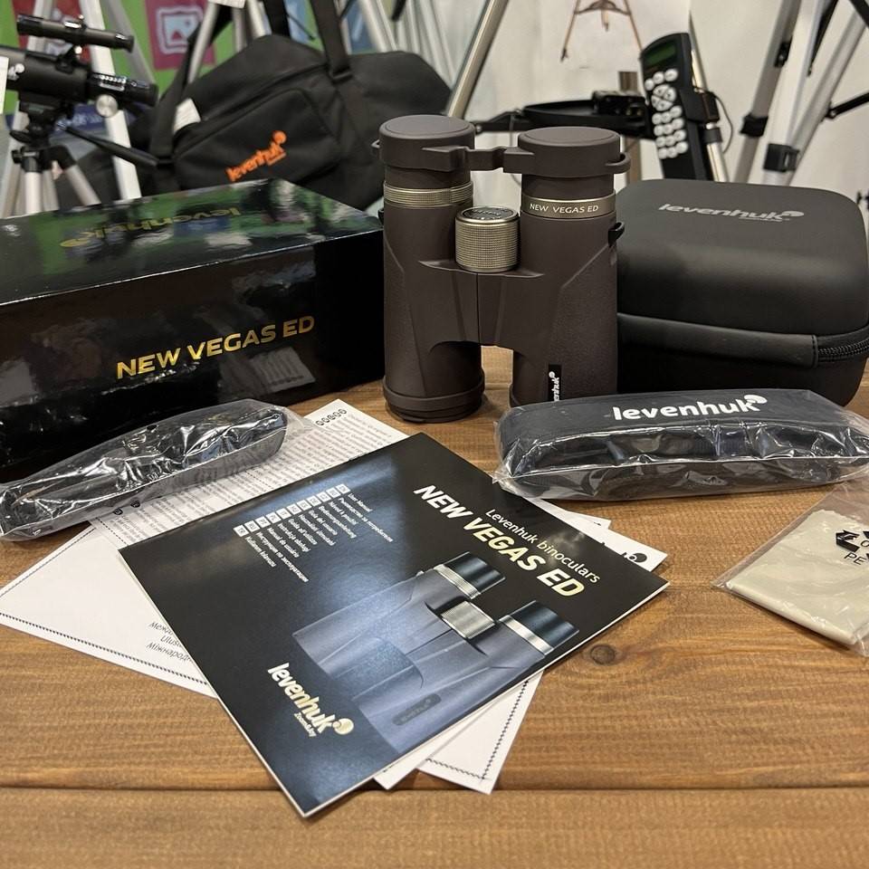 В комплекте с биноклем вы получите защитные крышки для линз, мягкий чехол для хранения и переноски, а также ремешок для удобства использования. Levenhuk New Vegas ED 8x42 – это надежный и высококачественный инструмент, который станет незаменимым помощником для каждого любителя природы и астрономии.