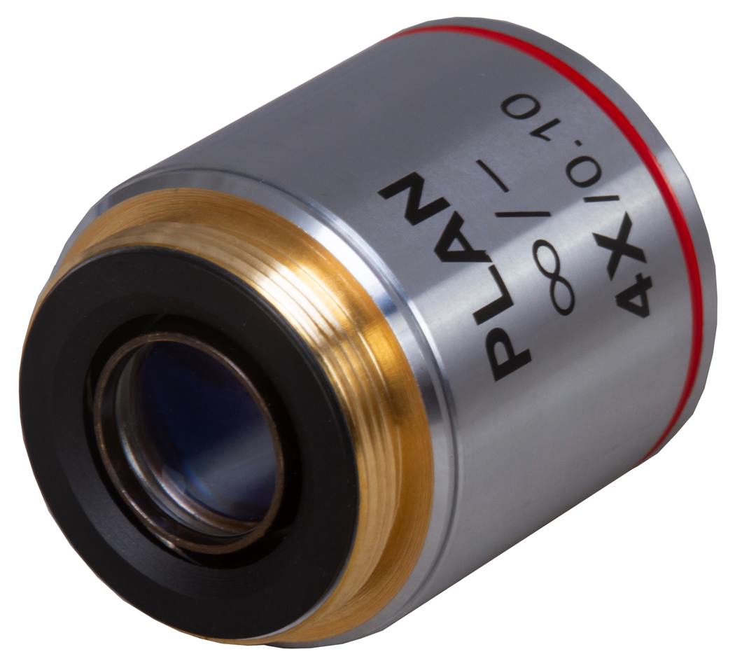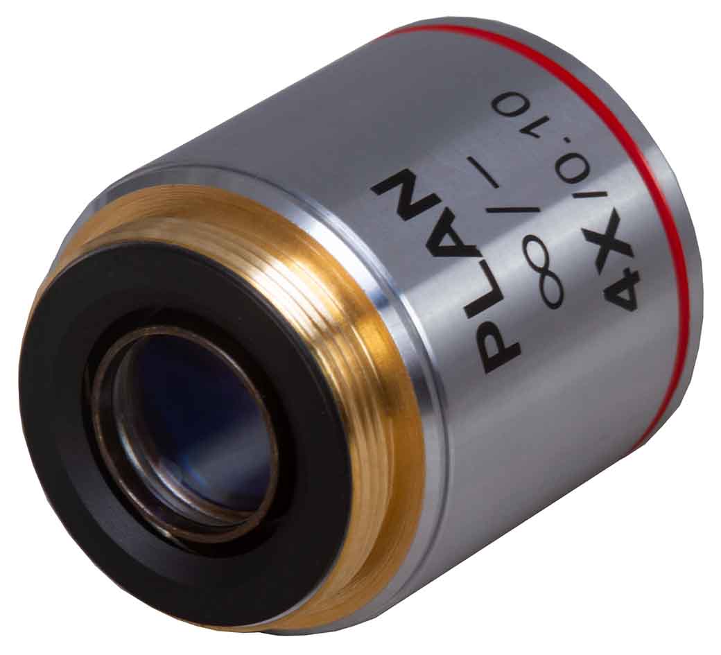 Объектив планахроматический Levenhuk MED 4x/беск – совместим устройствами фазового контраста