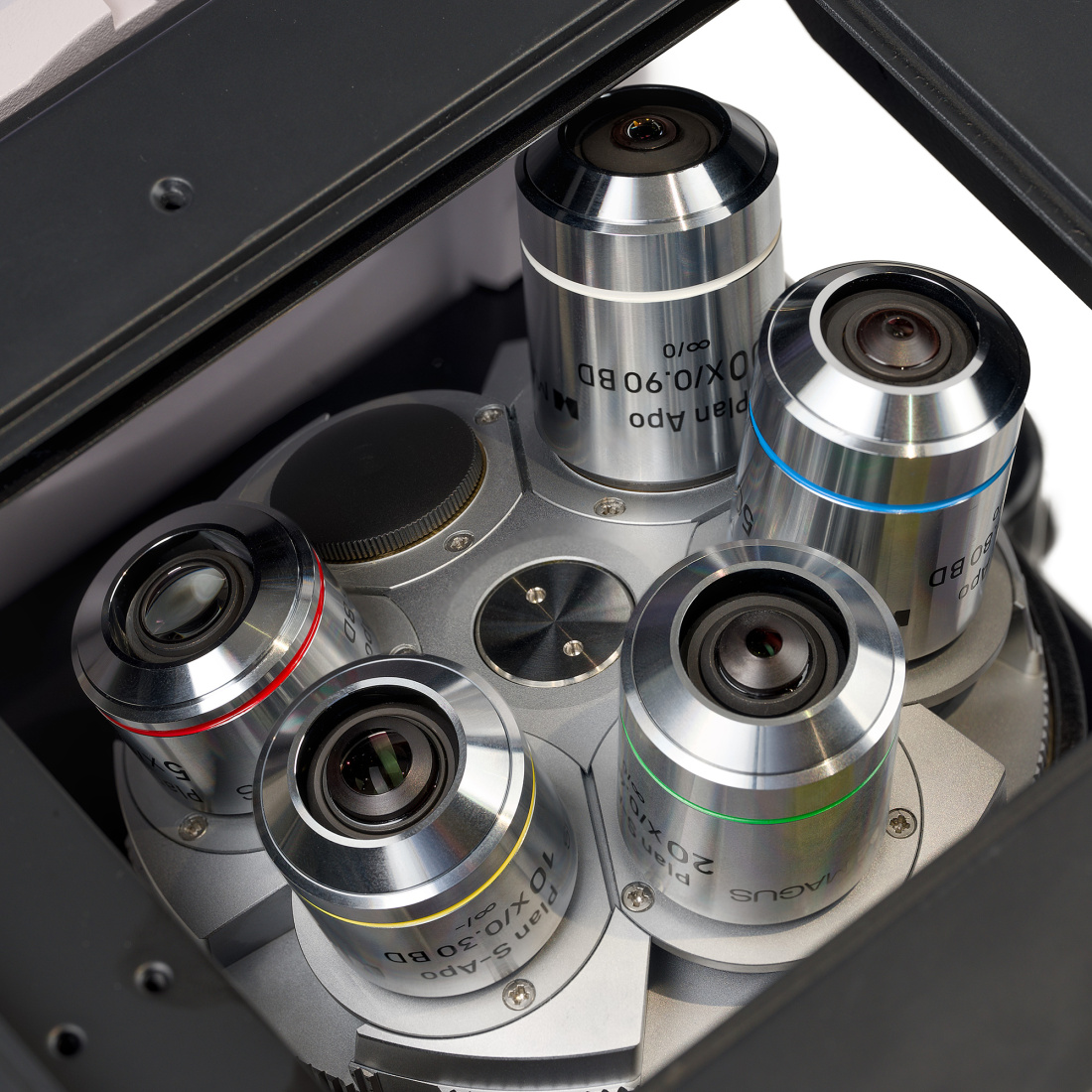 - Объектив-полуапохромат, рассчитанный на бесконечность: 5х/0,15 WD 20 мм