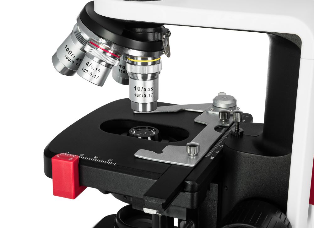 ахроматические: 4x/0,10; 10x/0,25; 40xs/0,65; 100xs/1,25 (масляный); парфокальная высота 45 мм; для работы с покровным стеклом 0,17 мм |