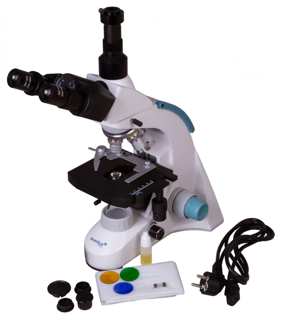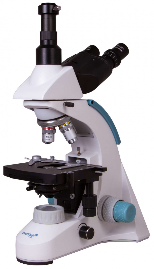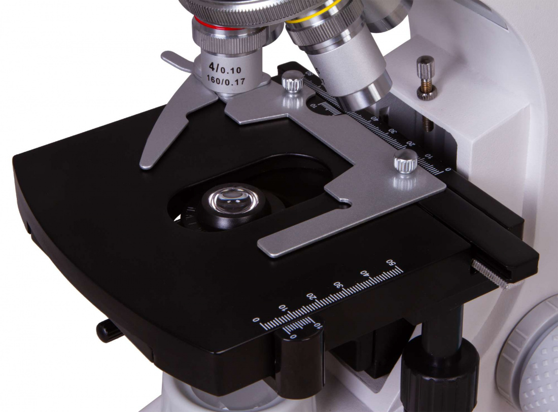 Увеличение. Микроскоп Levenhuk 900T обладает увеличением до 1000 крат и оснащен ахроматической оптикой, дающей высокодетализированное изображение. На револьверном устройстве установлено четыре объектива 4, 10, 40, 100х. 100-кратный объектив используется для наблюдения по методу масляной иммерсии.