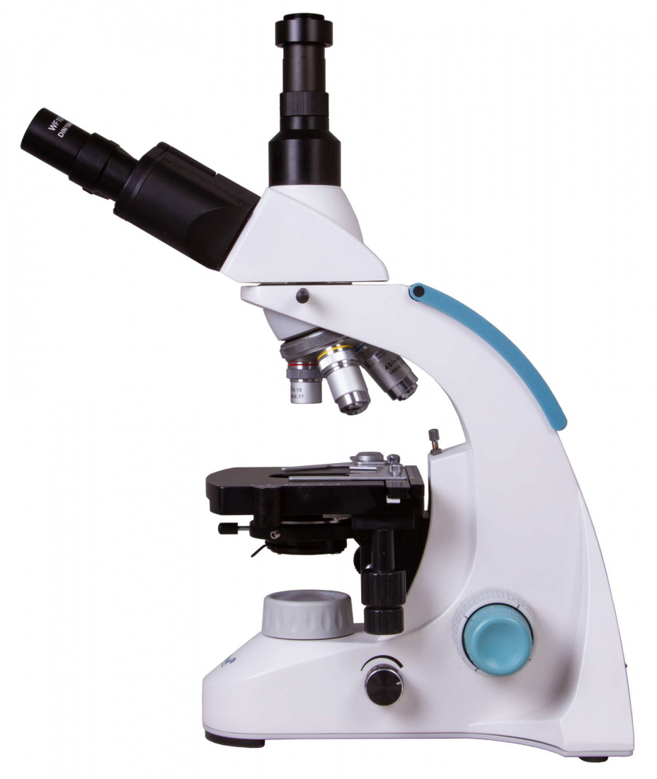 Тринокулярный микроскоп с ахроматической оптикой, имеющий все необходимые для работы механизмы: точную фокусировку, препаратоводитель, конденсор Аббе. Прибор может быть применен для проведения анализов крови и жидкостей, изучения клеточного строения растений и организмов, поиска бактерий и грибков.