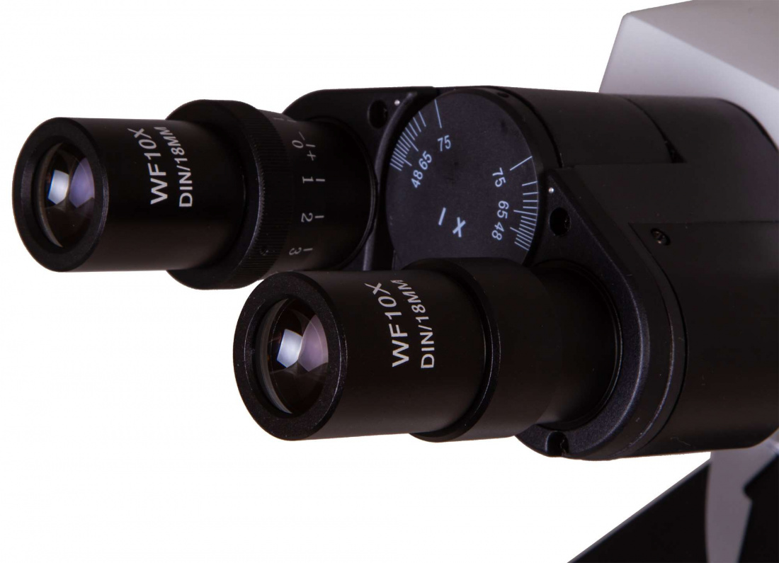 Подсветка. За освещение отвечает светодиодная подсветка с коллектором, формирующая ровный яркий свет нейтрального оттенка. Точная настройка освещения препарата достигается с помощью конденсора Аббе, который находится под предметным столиком.