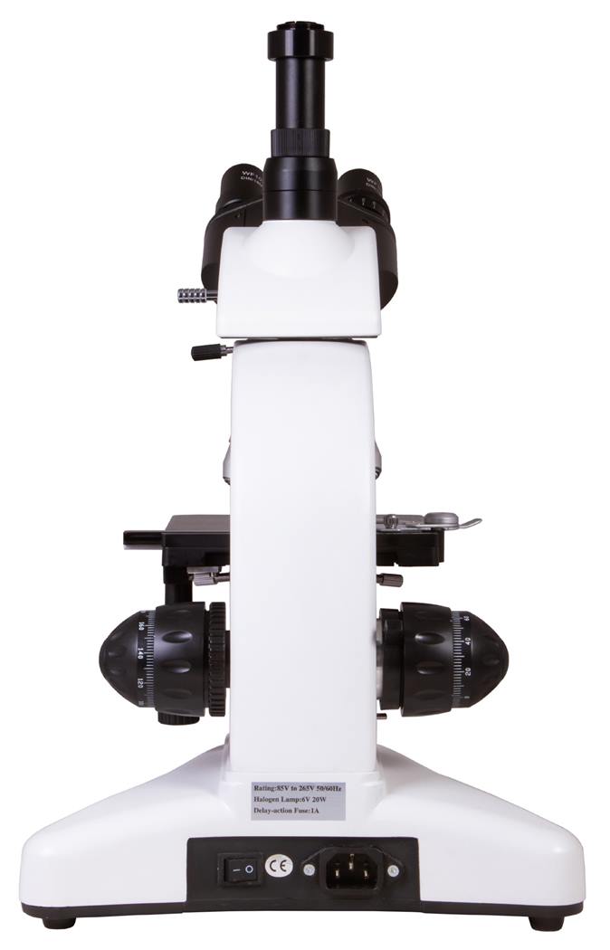 Удобство. Данный микроскоп для медицинской лаборатории снабжен столиком с препаратоводителем. Фокусировка осуществляется коаксиальными ручками настройки. Тринокулярная насадка расположена под углом наклона в 30°, а в отдельный окулярный тубус может быть установлена цифровая камера.