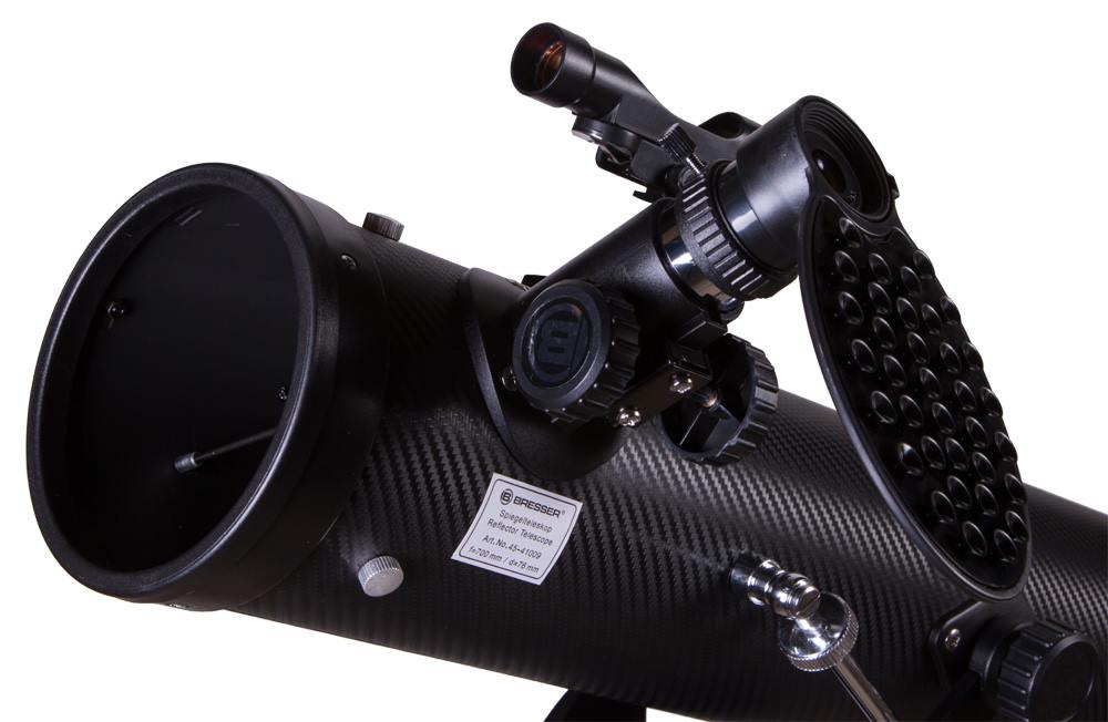 Оптическая система. Телескоп Bresser Venus 76/700 AZ является рефлектором Ньютона, имеет диаметр объектива (апертуру) 76 мм и фокусное расстояние 700 мм, что дает относительное отверстие f/9,2. Эти параметры достаточно универсальны как для комфортных лунно-планетных наблюдений, так и обзорного изучения наиболее ярких объектов глубокого космоса. Максимально полезное увеличение составляет 156 крат.