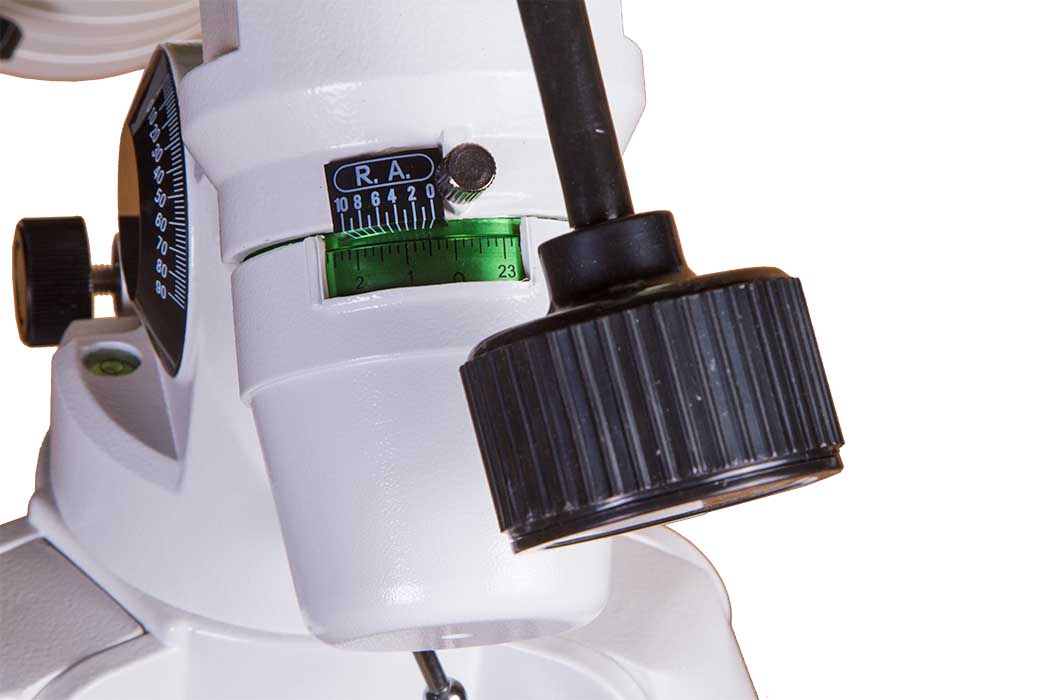 Голова монтировки оснащена быстросъемным креплением «ласточкин хвост». Управление производится с помощью двух ручек тонкого движения.
