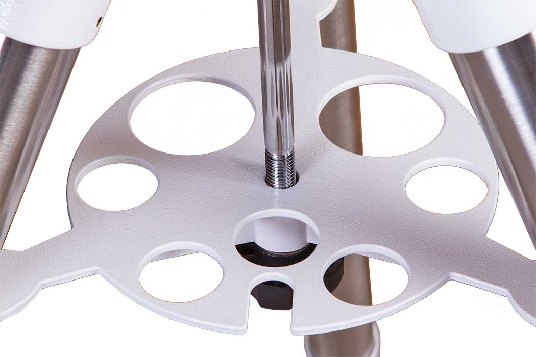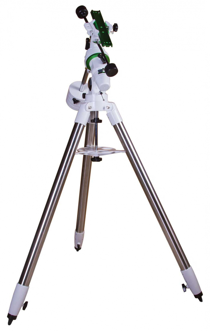 Монтировка установлена на треногу NEQ5 из нержавеющей стали. Она имеет регулировку по высоте, а также дополнительно усиливается распоркой. Вся эта конструкция способна выдерживать оборудование до 10 кг, что позволяет устанавливать крупные телескопы.