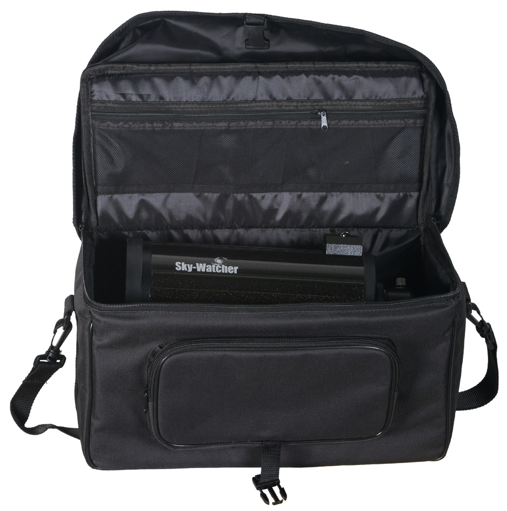 Отличительные возможности. Небольшие габариты и вес делают трубу MAK 80 хорошо подходящей для наблюдений на природе, с балкона или городского двора. На крепежной планке имеется резьба 1/4" для установки на обычный фотоштатив. В комплекте с трубой, помимо окуляров, поставляется калиматорный искатель для быстрого наведения на объект и вместительная сумка, в которой трубу и аксессуары можно хранить и перевозить.